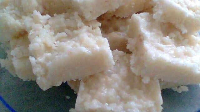 Depois é só cortar a cocada em quadrados.