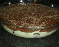 Depois que o creme estiver frio acrescente 1 lata de creme de leite e coloque em uma travessa.