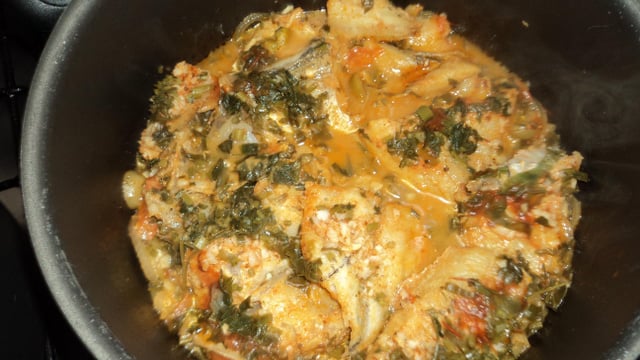 Quando a cebola e o tomate estiverem murchos, acrescente a pescada.