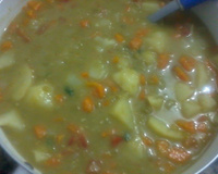Desligue e junte os legumes já cozidos, refogue o alho e a cebola e junte a sopa, sirva com torradas.