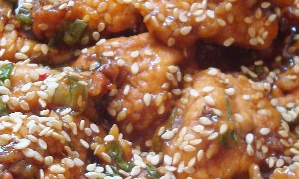Espere mornar e misture os pedaços de frango ao molho, salpique gergelim e cebolinha e está pronto!