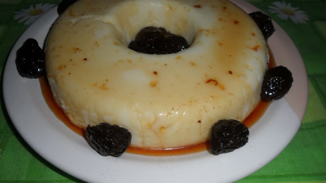 Desenforme e, se quiser, coloque ameixas em calda.