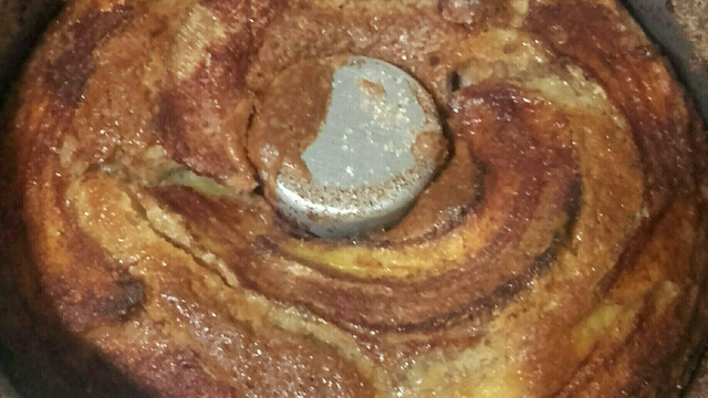 Unte com óleo uma forma, polvilhe com açúcar e a canela, inclusive as bordas.