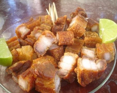 Coloque a panceta em uma vasilha, jogue o alho sobre ele, tempere com sal a gosto e limão (eu coloco um pouco de grill também), leve ao forno por cerca de 30 minutos.