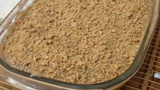 Termine com uma camada de recheio e esfarele as poçoquinhas restantes por cima dela.