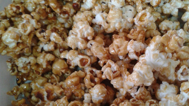 Quando começar a borbulhar coloque a pipoca e mexa até grudar todo o melado nela.