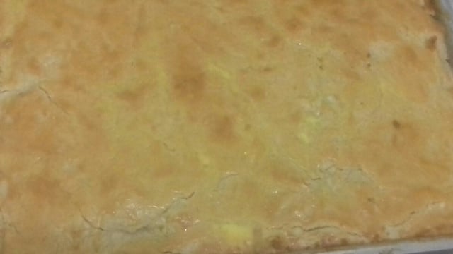 Abra a metade da massa em tabuleiro grande, coloque o recheio e cubra com a outra metade, pincele com gema de ovo e leve assar por 30 minutos.