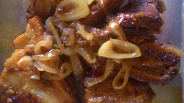 Depois abra, se restou muita água retire e deixe secar, mas geralmente não sobra água então coloque a cebola em rodela e dá um douradinha e pronto para servir
