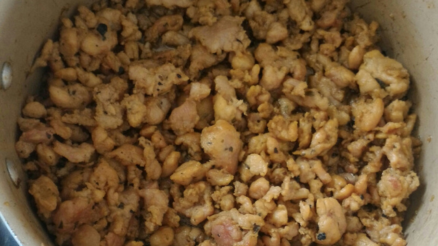 Primeiro ela vai juntar água e cozinhar e depois fritar.