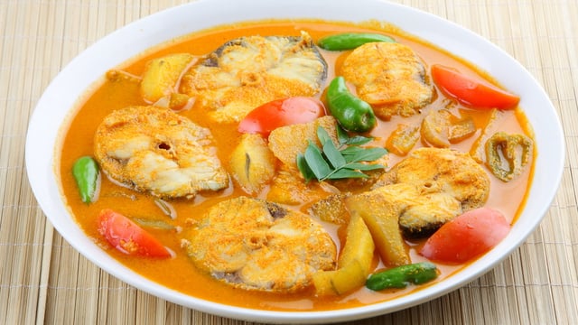Em uma panela refogue a cebola, após uns minutos coloque os tomates picados. Coloque as azeitonas e adicione a salsinha, o sal (lembre-se que já tem sal no peixe) e o curry (bem pouquinho para não alterar o sabor do peixe).