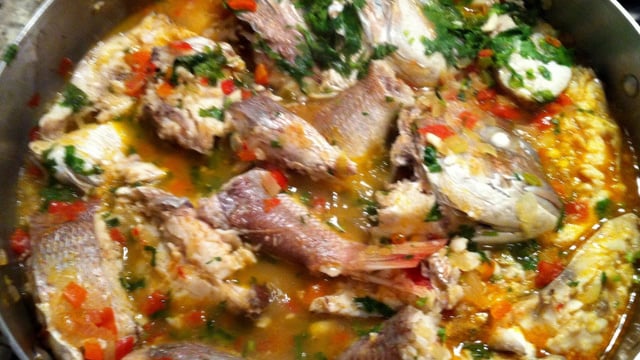 Deixe ferver até que perceba que o peixe está cozido, por mais ou menos 20 minutos (tomando cuidado para não ferver demais e não mexer para o peixe não desfazer).