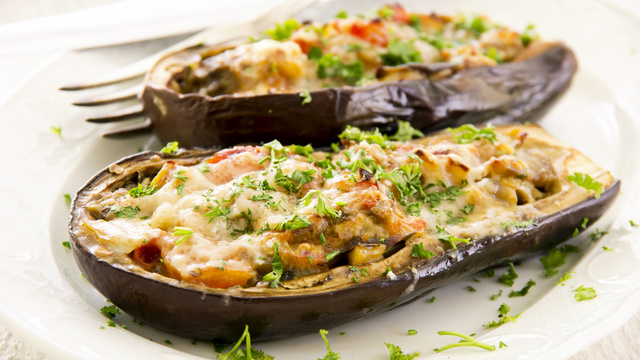 Vá mexendo até desgrudar da panela (como se fosse, e um pirão) retire do fogo junte a salsinha e recheie cada metade da berinjela cubra com fatias de mussarela (regue com um fio de azeite e polvilhe orégano opcional).