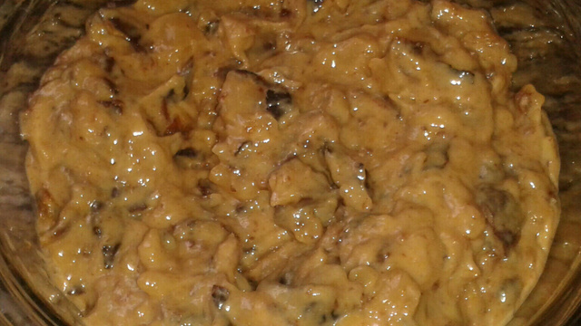 Depois que a ameixa estiver fria, coloque numa vasilha grande o doce de leite, o creme de leite e as ameixas.