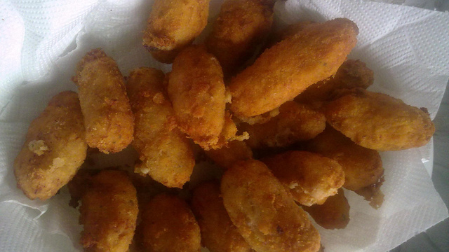 Dicas: quando voltar a panela ao fogo, antes de acrescentar o frango desfiado, deixe o caldo do frango na medida em que esteja um pouco acima da metade da panela. Na hora de preparar os bolinhos, procure usar uma colher para medir a massa. Coloque a medida que deseja na colher e coloque em uma tigela com a farinha de rosca, pegue a massa da tijela para moldar os bolinhos como desejar. É melhor moldar os bolinhos depois que passar pela farinha de rosca, pois se tentar moldá-los antes a massa gruda da mão.