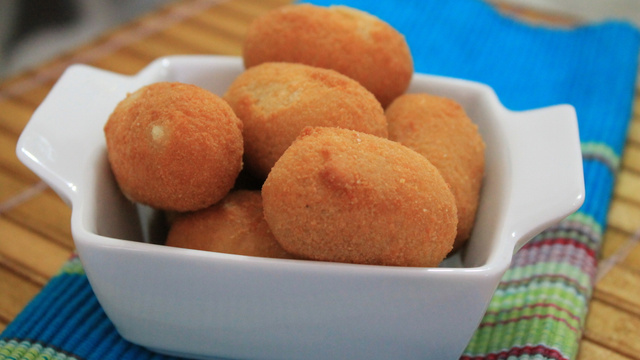 Depois que ela soltar do fundo da panela, e recheie as bolinhas com pedaços de mussarela.