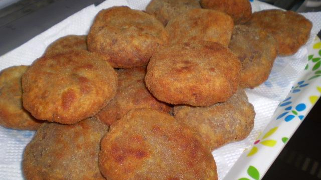 Bata o ovo restante com um pouco de leite e passe os bolinhos e em seguida na farinha, usando o mesmo óleo frite novamente até dourar.