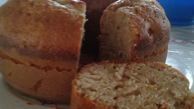 Depois junte o liquido do liquidificador na vasilha onde está a farinha, mexa bem, junte o fermento em pó, e por último as maçãs picadas junto com o caldinho que ser forma.