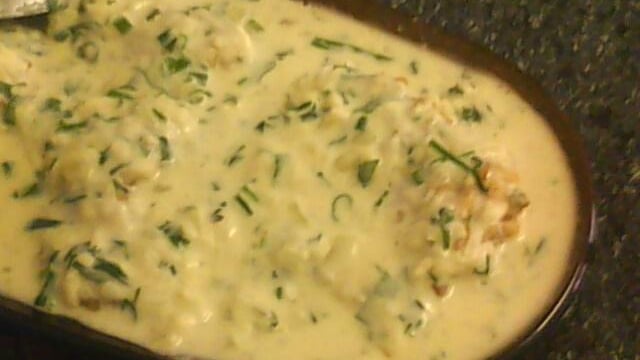 Mexa até ficar um molho cremoso, arrume o peixe em um refratário e jogue este molho bem quente por cima.