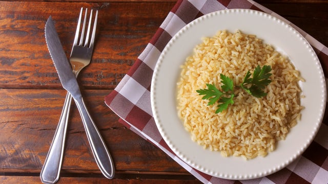 Acrescente o arroz integral lavado e escorrido, sal e a água. Quando a panela começar a chiar, abaixe o fogo e conte 10 minutos. Desligue e aguarde sair a pressão.