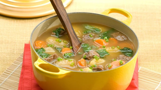 DICA Se desejar, substitua o músculo pela mesma quantidade de linguiça calabresa fatiada. FAZ BEM SABER O músculo é uma carne muito saborosa e ideal para o preparo de molhos, ensopados, carnes de panela e sopas. Retire a gordura aparente e tenha uma sopa mais saudável. Créditos: Cozinha Nestlé/ Sheila Oliveira