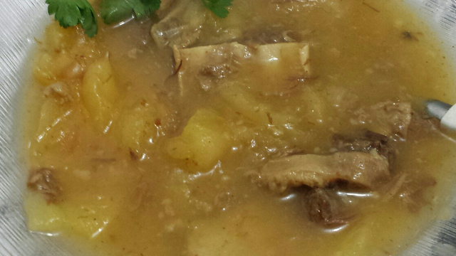 Está pronta uma deliciosa sopa de mandioca.