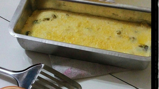 Coloque os brócolis dentro de um prato refratário e espalhe por cima o molho branco, mexendo levemente para penetrar nos brócolis.