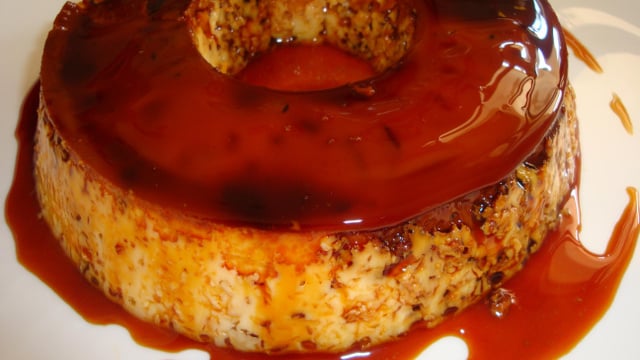 Reserve. Em seguida se encarregue da calda. Coloque as 10 colheres de açucar em uma panela antiaderente com cabo e leve em fogo médio. Mexa circularmente a panela em cima do fogo até virar um caramelo e depois coloque no fundo da forma de pudim com furo. Pegue os ingredientes batidos à mão e coloque por cima da calda na forma (não é necessário untar).