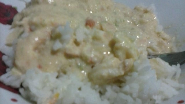 Adicione o camarão douradinho ao creme e desligue o fogo.