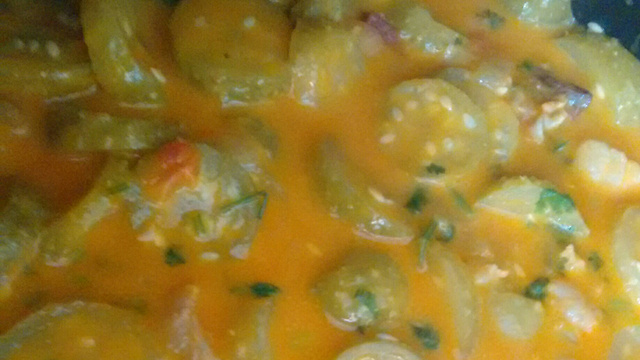 Por último coloque o azeite e o leite de coco, deixe cozinhar e sirva com arroz branco e molho lambão baiano.