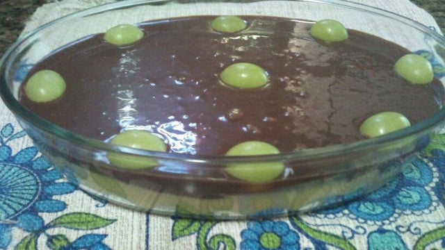 Tire as uvas do cacho, lave, seque, coloque em um refratário de vidro e reserve (separe 6 para enfeitar).