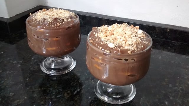 Molhe as bolachas no leite, forre a travessa com a as bolachas e depois jogue o creme, repita as camadas sucessivamente.