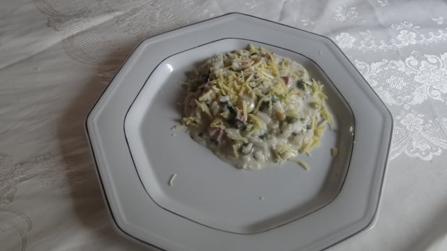 100 g de peito de peru ou presunto cortados em cubos