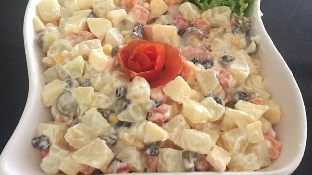Cozinhe os legumes (batatas e cenouras) até que fiquem al'dente (cozidas, mas bem firmes) e deixe esfriar.