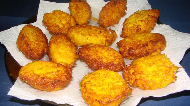 Fritar em óleo quente, às colheradas.