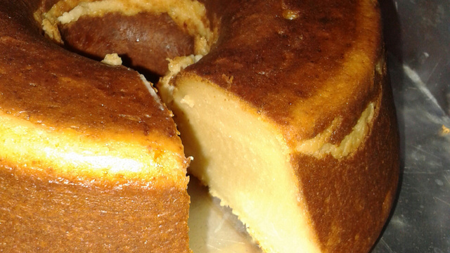 Depois acrescente a farinha de trigo e o leite aos poucos, bata novamente 5 minutos. Coloque em uma forma untada e coloque no forno preaquecido a 180°C por 45 minutos.