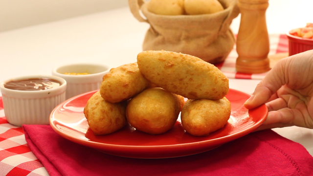 Coloque um pouco de carne moída dentro da massa enrole e coloque no óleo pra fritar.