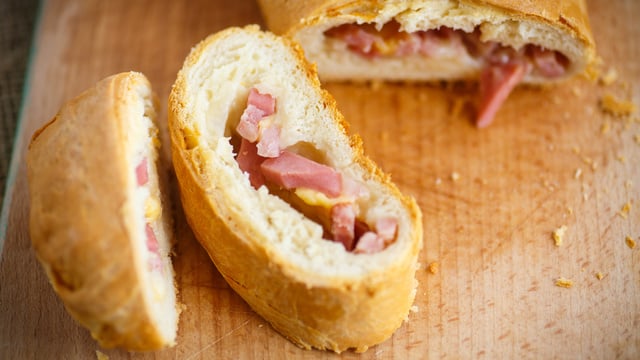 Nota: O recheio será disposto sobre a massa como se fosse uma pizza, porém lembre-se de deixar as bordas laterais e oposta com uns 2cm sem receheio. Também lembre-se de que trata-se de pão recheado e se colocar muito recheio a massa pode não assar por dentro. Deixe o tomate cortado numa peneira para que a água que ele drene seja eliminada. Se preferir pode moldar em forma de pão caseiro sem recheio, porém sempre pincelar gema de ovo.