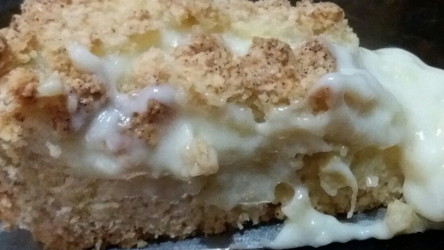 Em uma assadeira untada, coloque metade da farofa no fundo da forma, pressionando levemente. Espalhe o creme sobre a farofa e, sobre ele, o restante da farofa. Leve ao forno médio preaquecido até dourar (por volta de 40 minutos).