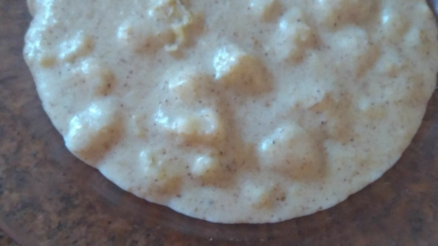 Coloque o leite e a aveia no fogo, mexa até engrossar.