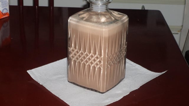 Obs.: Se tiver dificuldade de conseguir o recipiente escuro, substitua por garrafas de vinho vazias, ou de cerveja long neck, mas para utilizá-las tem que esterelizá-las com água quente, deixar em água quente por no mínimo 15 minutos. Se desejar fâzê-lo com um grau alcóolico mais suave pode usar cidra de maçã. Se for utilizar chocolate ao leite, diminua a quantidade de açúcar para 100 g.