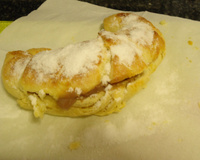 Obs.: Caso queira dar sabor a medialuna pode-se misturar essência de baunilha a manteiga ou raspa de laranja e levar para gelar no formato retangular, antes de agregar a massa. Também existem outras formatos que eles dão a essa massa, que se chamam, pasteleira, molinos e facturas, esses levam recheio que variam entre geléia de damasco a creme de baunilha, uma delícia! A receita requer muita paciência, porém o resultado vale todo o sacrifício!