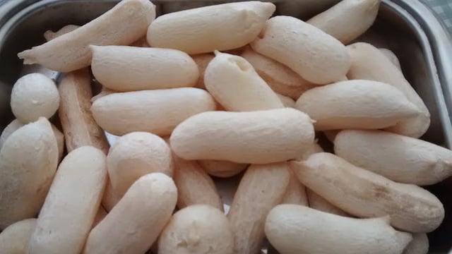 Coloque o óleo, a água, adicione o sal e leve para ferver misture ao polvilho, espere esfriar.