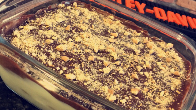 Em um refratário, passe um pouco de creme para forrar, coloque as bolachas sem molhar, formando camadas.