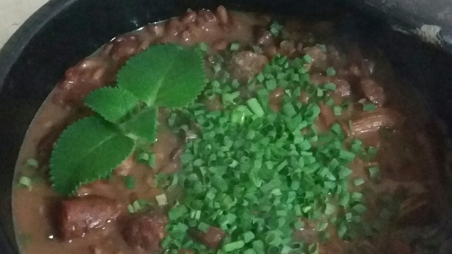 1 caldo de bacon com louro