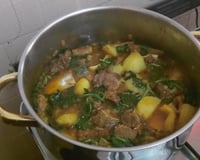 Em uma panela de pressão refogar a rabada com cebola, alho, pimenta-do-reino até dourar.