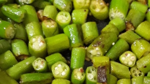 Em uma frigideira, de preferência antiaderente, coloque azeite e frite alho e cebola até dourarem. Coloque então os quiabos em rodelas e deixe o fogo médio. Até 10 minutos.