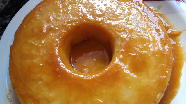 Despeje numa forma de pudim caramelada e leve ao formo em banho-maria por 60 minutos. Depois de assado em banho-maria deixe esfriar e leve ao refrigerador.