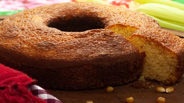 O bolo fica muito bem acompanhado no lanche da tarde com um cafézinho quentinho.