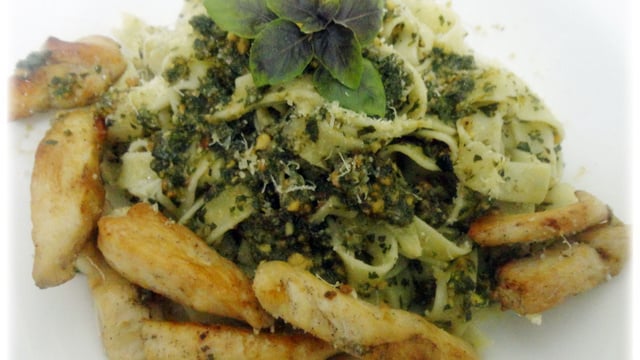 Agora cozinhe a massa de sua preferência, com ela ainda quente jogue o pesto por cima, misture e sirva.