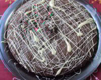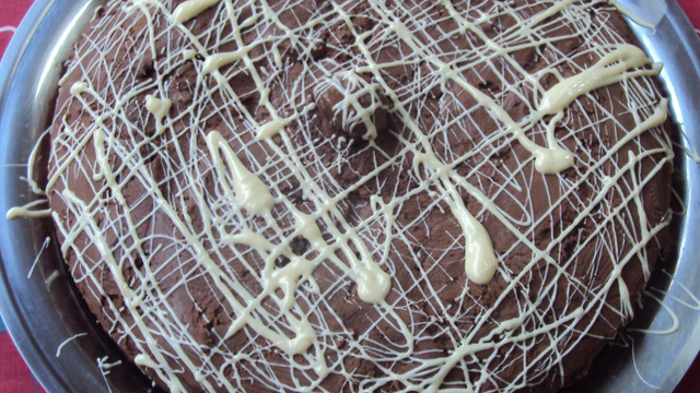 Decore o bolo com o chocolate branco derretido.